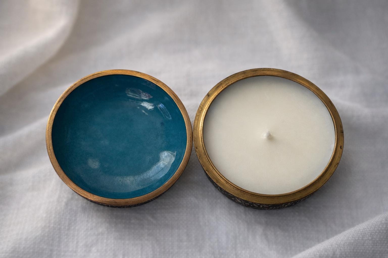 As the candle burns, the box becomes even more striking. Once finished, it can be gently cleaned and used again as a trinket box, perfect for jewelry, keepsakes, or treasured objects. Whether displayed on a vanity, shelf, or bedside table, Mystique commands attention-a true statement piece.